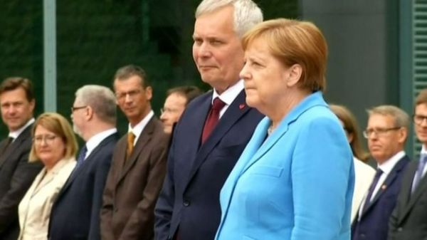 تصاویری از دیدار آنگلا مرکل صدراعطم آلمان با نخست وزیر فنلاند منتشر شده که نشان می‌دهد خانم مرکل در حالی که دستانش را مشت کرده برای لحظاتی تمام بدنش می‌لرزد.