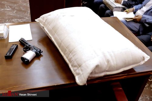 اسلحه و بالشتی که در قتل میترا استاد استفاده شده بود - عکس