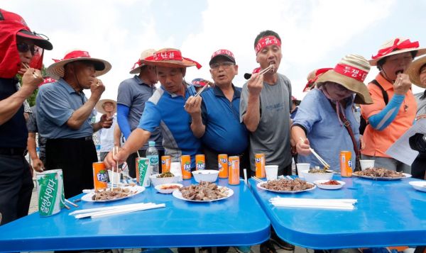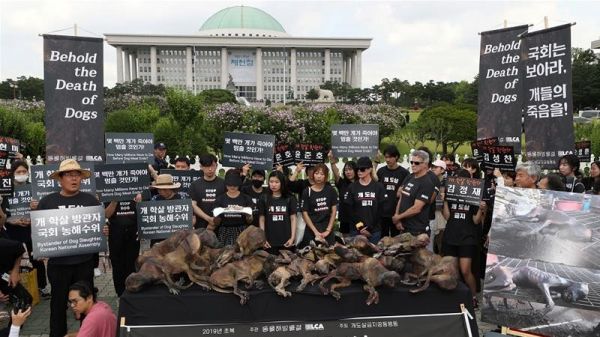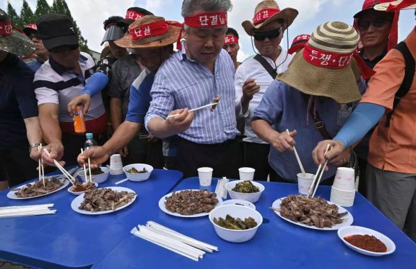 پرورشدهندگان گوشت سگ در کرهجنوبی در مقابل مدافعان حقوق حیوانات که در «روز خوردن گوشت سگ» به خیابانها آمدند، گوشت آبپز شده این حیوان را در مقابل ساختمان پارلمان این کشور خوردند. پروشدهندگان سگ که سربندهایی قرمزرنگ با نوشتهی «جنگ. اتحاد» به سرشان بسته بودند با این اقدام خود معترضان و فعلان حقوق حیوانات را شماتت و مضحکه کردند.