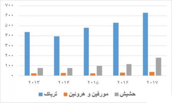 کشف مواد مخدر در ایران (تن در سال):