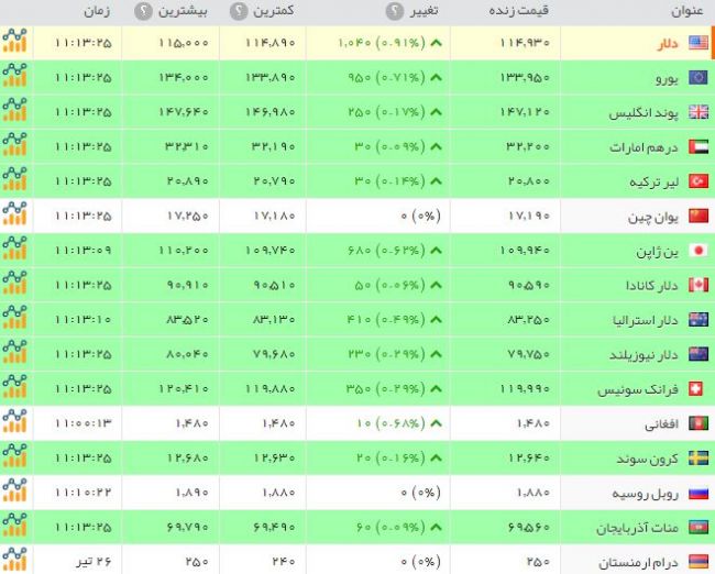 قیمت ارز در بازار امروز پنجشنبه ۲۷ تیر