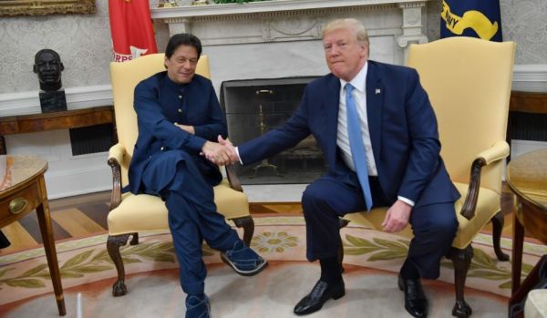 دونالد ترامپ (راست) در حال دست دادن به عمران خان، نخست‌وزیر پاکستان، که برای یک سفر رسمی به آمریکا رفته است. رادیو فردا :دونالد ترامپ می‌گوید که روز به روز مذاکره و توافق با ایران برای او سخت‌تر می‌شود و از جمهوری اسلامی به عنوان بزرگترین «حامی تروریسم دولتی» در جهان نام برد.