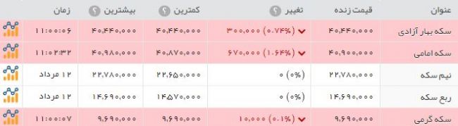 قیمت سکه و قیمت طلا در بازار امروز یکشنبه ۱۳ مرداد