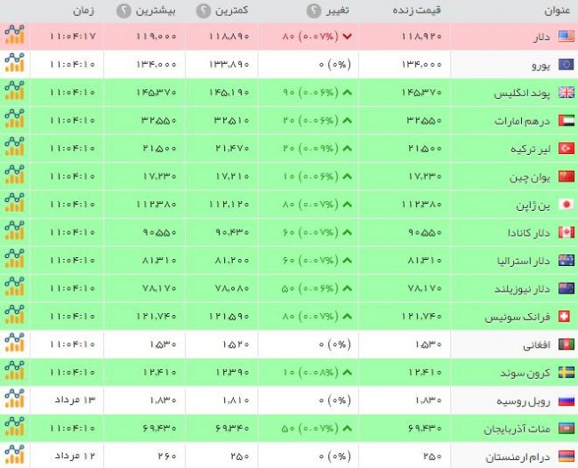قیمت دلار, یورو, پوند ,سکه و طلا در بازار امروز دوشنبه ۱۴ مرداد