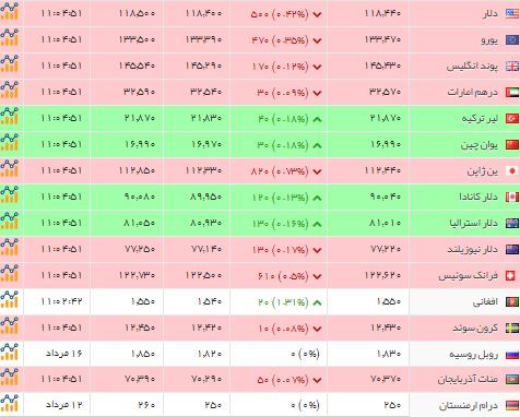 قیمت دلار, یورو, پوند ,سکه و طلا در بازار امروز پنجشنبه ۱۷ مرداد