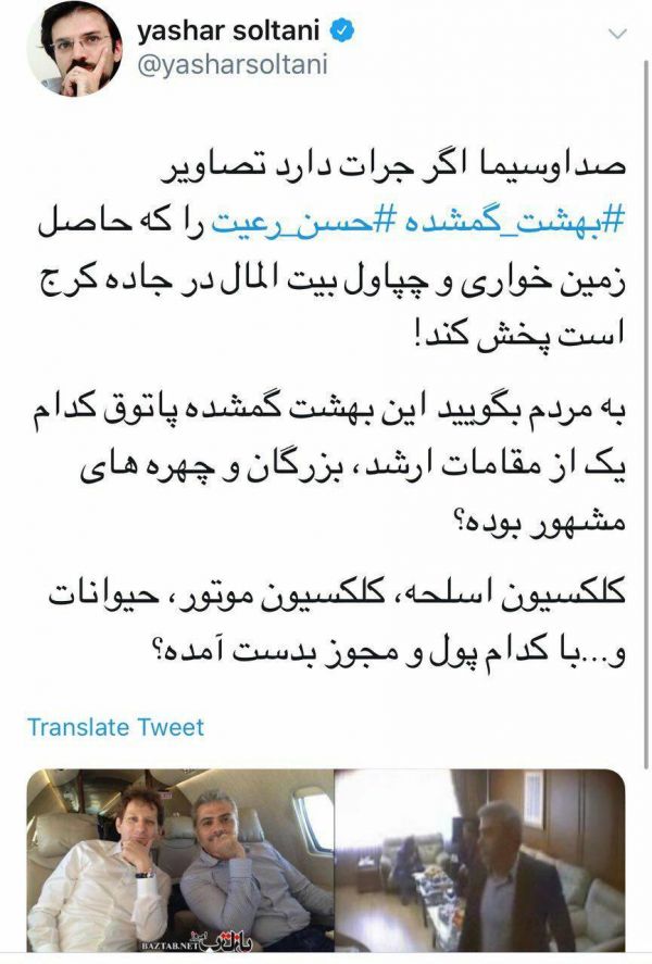 یاشار سلطانی: صداوسیما اگر جرات دارد تصاویر بهشت گمشده حسن رعیت را نشان دهد