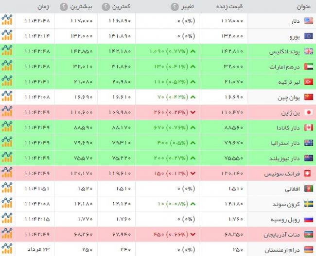 قیمت ارز در بازار امروز شنبه ۲۶ مرداد