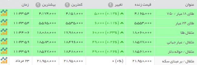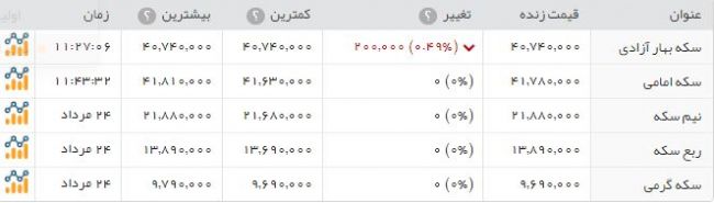 قیمت سکه و قیمت طلا در بازار امروز شنبه ۲۶ مرداد