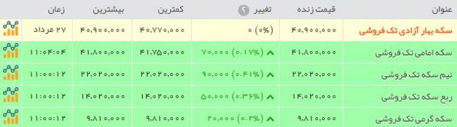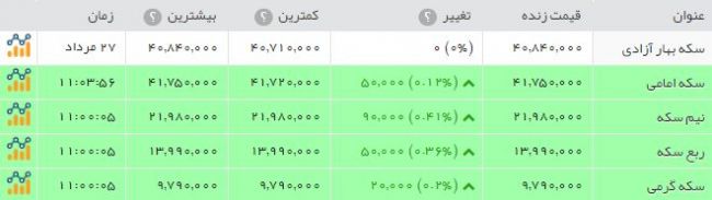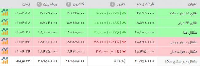 قیمت سکه و قیمت طلا در بازار امروز دوشنبه ۲۸ مرداد