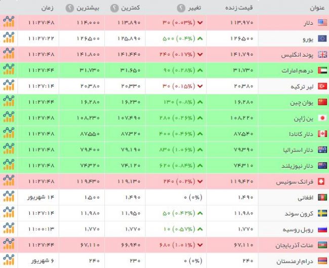 قیمت ارز در بازار امروز شنبه ۱۶ شهریور