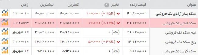 قیمت سکه و قیمت طلا در بازار امروز شنبه ۱۶ شهریور