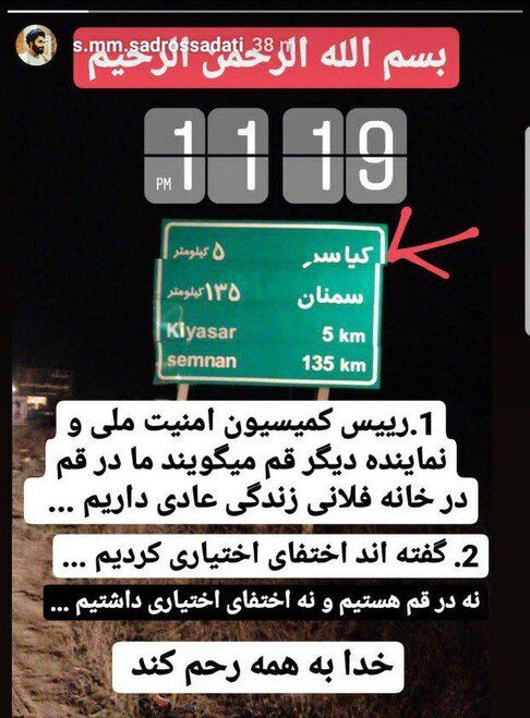 استوری مرموز سیدمهدی صدرالساداتی در صفحه اینستاگرامش