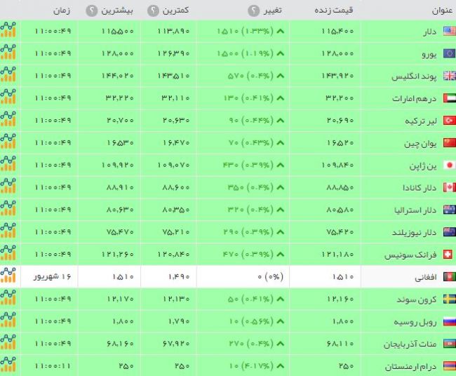 در این گزارش متوسط قیمت خرید ارز در صرافیها را در نظر گرفتهایم در حالتی که مشتری یک آدم معمولی است و قصد دارد اسکناسهایی به ارزش زیر هزار دلار (احتمالا به قصد مسافرت) تهیه کند.قیمت ارز در بازار امروز یکشنبه ۱۷ شهریور