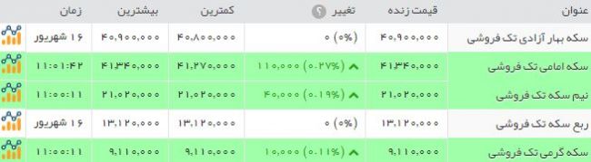 قیمت سکه و قیمت طلا در بازار امروز یکشنبه ۱۷ شهریور