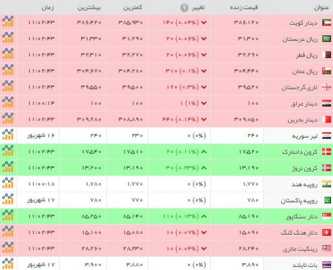 در این گزارش متوسط قیمت خرید ارز در صرافیها را در نظر گرفتهایم در حالتی که مشتری یک آدم معمولی است و قصد دارد اسکناسهایی به ارزش زیر هزار دلار (احتمالا به قصد مسافرت) تهیه کند.قیمت ارز در بازار امروز چهارشنبه ۲۰ شهریور