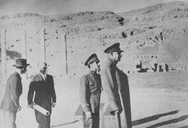 رضاشاه و محمدرضا پهلوی در حال بازدید از تخت جمشید ، 1317