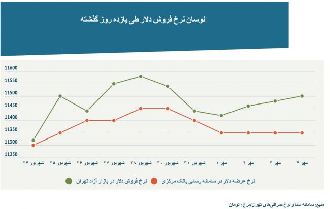 یورونیوز :با وجود تثبیت نرخ عرضه رسمی ارز از سوی بانک مرکزی ایران، بهای فروش دلار در بازار آزاد تهران شاهد صعود پلکانی بود.بانک مرکزی ایران روز پنجشنبه نیز قیمت عرضه هر دلار را از طریق سامانه رسمی صرافیها همچون سه روز کاری گذشته در نرخ ۱۱ هزار و ۳۵۰ تومان ثابت نگاه داشت، با این وجود نرخ فروش دلار در بازار آزاد تهران در پایان چهار روز افزایش پله پله به ۱۱ هزار و ۵۰۰ تومان رسید.