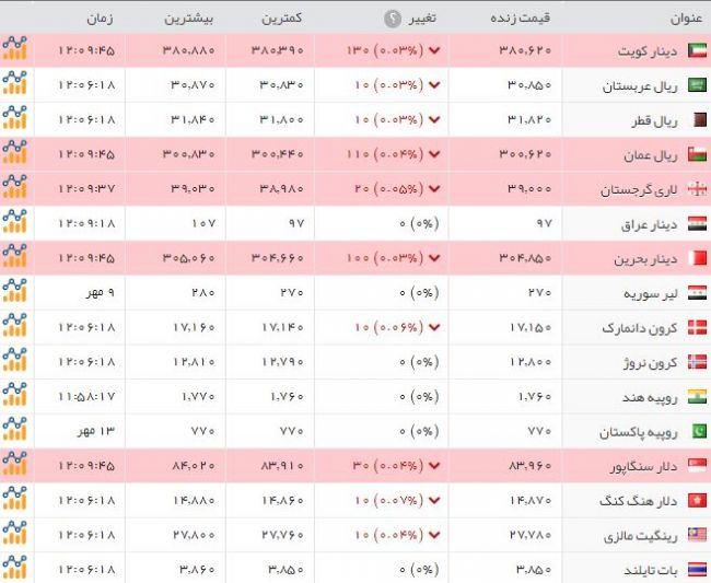 در این گزارش متوسط قیمت خرید ارز در صرافیها را در نظر گرفتهایم در حالتی که مشتری یک آدم معمولی است و قصد دارد اسکناسهایی به ارزش زیر هزار دلار (احتمالا به قصد مسافرت) تهیه کند.قیمت ارز در بازار امروز یکشنبه ۱۴ مهر