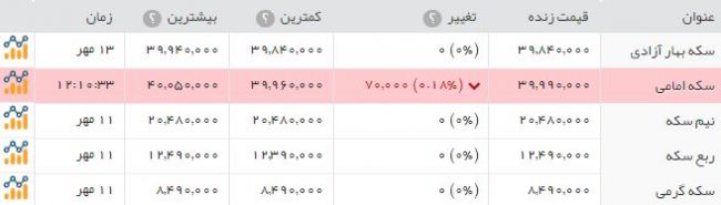 قیمت سکه و قیمت طلا در بازار امروز یکشنبه ۱۴ مهر