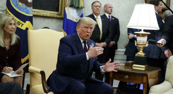 وی گفت: «ایران به دردسر افتاده است. اقتصاد این کشور دچار مشکلات جدی شده است. تولید ناخالص داخلی ایران ۲۰ درصد سقوط کرد که بی سابقه است؛ شاید هم ۲۵ درصد. ما با ایران گفتگو خواهیم کرد. آنها مایلند که گفتگو کنند. تحریمهای اقتصادی و تعرفه هایی که بر ایران و کشورهایی که با ایران تجارت می کنند، به خوبی کار کرده است. ایران نمونه جالبی است. خواهیم دید که گفتگو خواهند کرد یا نه. اگر گفتگو کنند خوب است؛ اگر گفتگو نکنند هم مشکلی نیست.»
