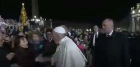پاپ بلافاصله ناخشنودی خود را از این کار این فرد نشان داد. رهبر کاتولیکهای جهان دستش را پس کشید و دو بار روی دست این زن زد.