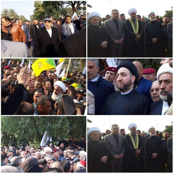 منابع عراقی از آغاز مراسم تشییع جنازه سردار قاسم سلیمانی و ابومهدی المهندس و تعدادی دیگر از کشته شدگان حشد شعبی از فرودگاه المثنی در بغداد به سمت کاظمین خبر دادند.