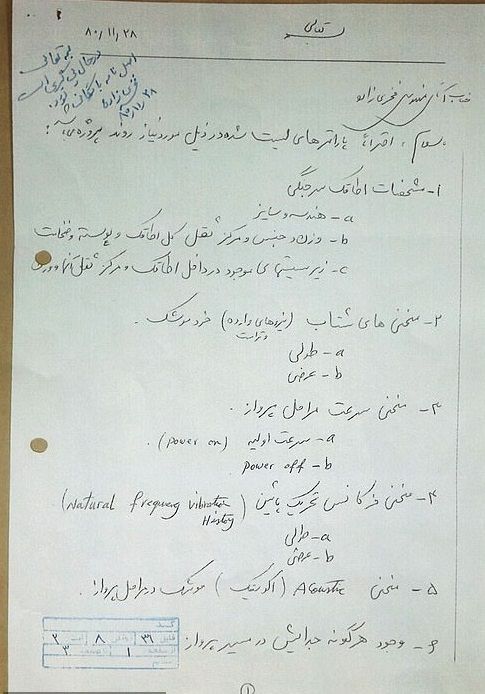 این نشریه تصویر نامهای را منتشر کرده است که نشان میدهد یک مقام ارشد هستهای ایران در سال ۱۳۸۰ درخواست میکند پارامترهای موردنیاز نصب کلاهک جنگی روی موشک ارائه شود.