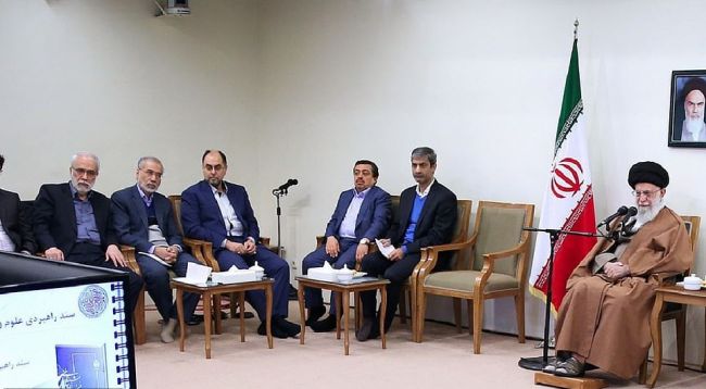 محسن فخریزاده، از مقامهای ارشد برنامه هستهای ایران و استاد فیزیک هستهای دانشگاه امام حسین در دیداری با آیت الله خامنه ای رهبر ایران