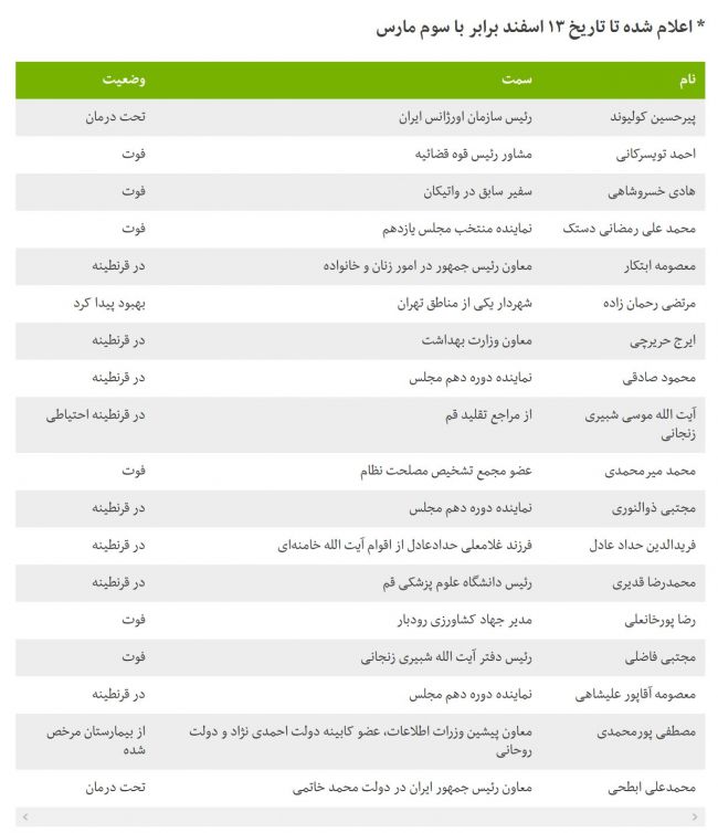 کرونا در ایران : فوت مشاور رئیس قوه قضائیه و ابتلا رئیس اورژانس ایران به ویروس کرونا
