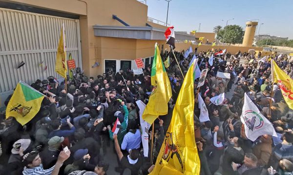 تصویری از حمله به سفارت آمریکا در بغداد با پرچم های گروه کتائب حزب الله ( تصویر آرشیوی) رادیو فردا :همزمان با قوت گرفتن ارزیابی در میان فرماندهان حشدالشعبی عراق و مقامات دولت بغداد در مورد حمله قریبالوقوع آمریکا به نیروها و پایگاههای گروههای شبه نظامی شیعی همپیمان با تهران، مقامات ارشد نظامی و سیاسی ایران به آمریکا در مورد عملی کردن چنین حملاتی هشدار دادند.