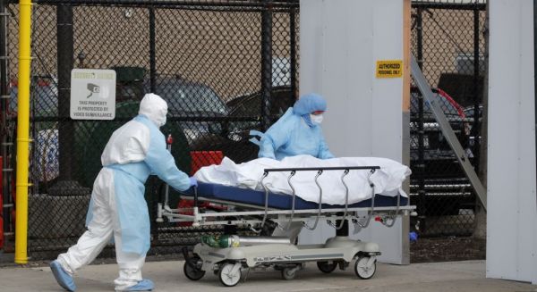 حمل جسد یکی از جانباختگان از ویروس کرونا توسط پرسنل بیمارستانی در نیویورک صدای آمریکا :نیویورک با بیش از ۳۵۰۰ مورد تلفات، یکی از ایالتها در آمریکا است که بیشترین ضربه را از شیوع ویروس کرونا دیده است.کارشناسان بهداشت عمومی می گویند این شرایط نه تنها برای نیویورک، بلکه برای نقاط دیگر آمریکا نیز رو به وخامت است.
