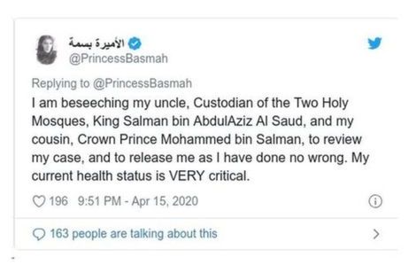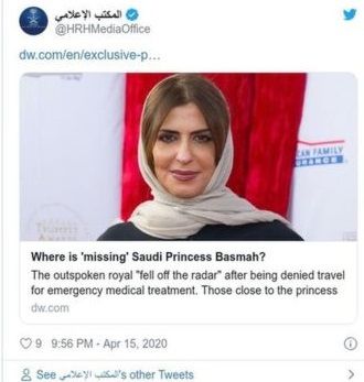 این توییت بعدا حذف شده است در سالهای اخیر تعدادی از شاهزادههای سعودی که اغلب منتقد دولت عربستان بودهاند بازداشت و یا ناپدید شدهاند.