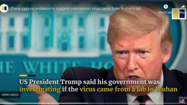امروز، جمعه، وزارت خارجه چین با رد کردن دوباره این اتهامها از کاخسفید انتقاد کرد که با پر و بال دادن به این تئوری اثبات نشده، بنا دارد توجهها را از "اهمال و کم کاریهای" خود در مواجهه با کرونا منحرف کند.
