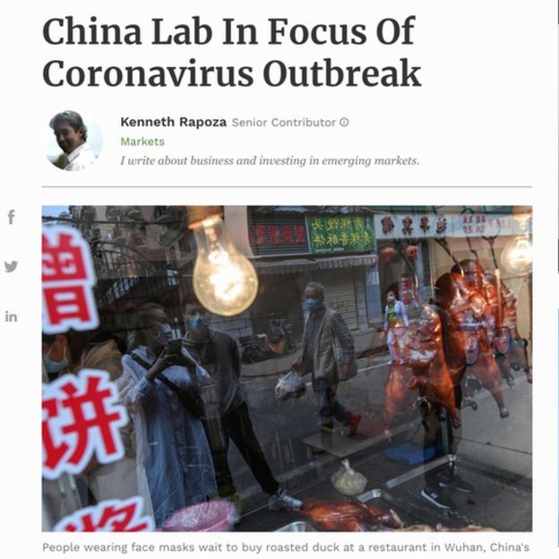 مجله فوربس هم که معمولا درباره اقتصاد جهان مینویسد به تئوری آزمایشگاه ووهان توجه کرده چرا روایت پکن از نقطه آغاز شیوع کووید۱۹ در آمریکا خریداری ندارد؟ دیوید ایگناشس، گزارشگر پرسابقه واشنگتنپست دو هفته پیش (دوم آوریل) در گزارشی از تردیدها پیرامون روایت دولت چین درباره نقطه آغاز شیوع ویروس جدید کرونا نوشت و آن را "متزلزل" خواند.
