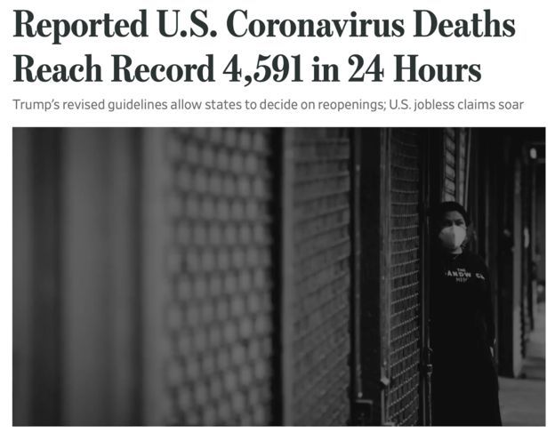 به ویژه که رسانههای آمریکا ظهر جمعه، ۱۷ آوریل، گزارش کردند شمار جان باختگان کووید۱۹ در این کشور باز هم به سقف جدیدی افزایش یافته است؛ ۴۵۹۱ مرگ طی ۲۴ ساعت گذشته.