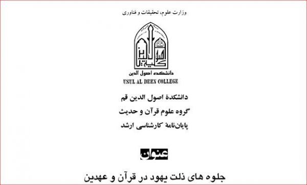 - "جلوه های ذلت یهود از دیدگاه قرآن و عهدین" ( دانشگاه اصوال الدین، ۱۳۹۳)