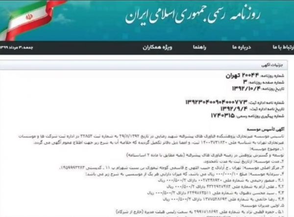 موسسه ای که سال ۹۲ تاسیس شده گواهی داده مهرداد بذرپاش از سال ۷۹ در آن فعالیت کرده