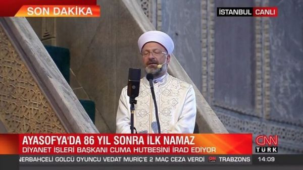 او در خطبههای خود در ایاصوفیه گفت که "سلطان محمد فاتح این محل عبادت را به این شرط وقف مومنان کرد که تا روز قیامت مسجد باقی بماند."
