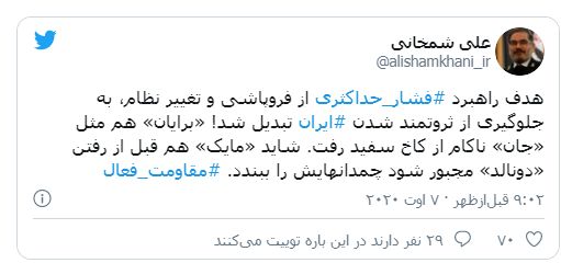 او اضافه کرد: «ایران به زانو درنیامده و چنین نمیکند، فارغ از اینکه چه کسی مسئول اجرای این سیاست مردود باشد.»