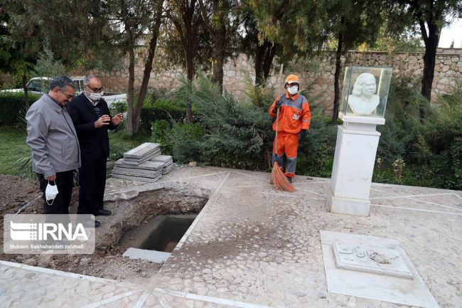 آدم شگفت زده میشه که یک فردی که مشهور بوده , وضع مالی مناسبی هم داشته , مرگش هم با توجه به شرایط جسمانیش غیر منتظره نبوده , نمیشد با برنامه ریزی , یک شمایل زیبا تر , مناسب برای یک هنرمند, بهتر از این کلوخ ها و تخته پاره ها روی مزارش بریزن