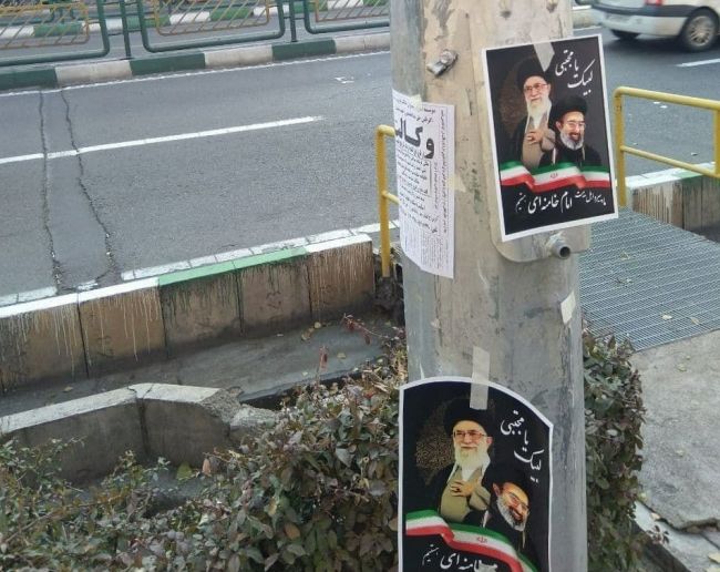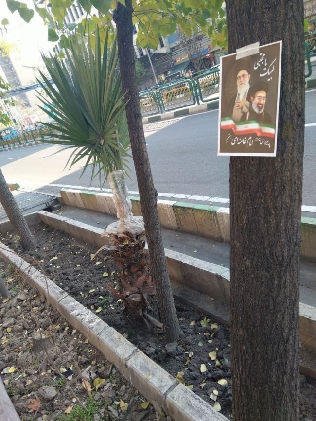 بهنام قلیپور روزنامهنگار با انتشار این تصویر در صفحه توئیترش نوشت: «گفته شده؛ امروز، تهران، حوالی میدان انقلاب توزیع و نصب تراکت برای رهبری #مجتبی_خامنهای»