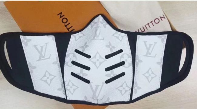 ماسک سفید را با ماسک چرم قرمزی که آرم «گوچی» دارد، عوض میکند و میگوید: «از همه برندها برایتان ماسک آوردهام؛ گوچی، لویی ویتان، فندی، دیور... فقط ۱۵ هزار تومان.»
