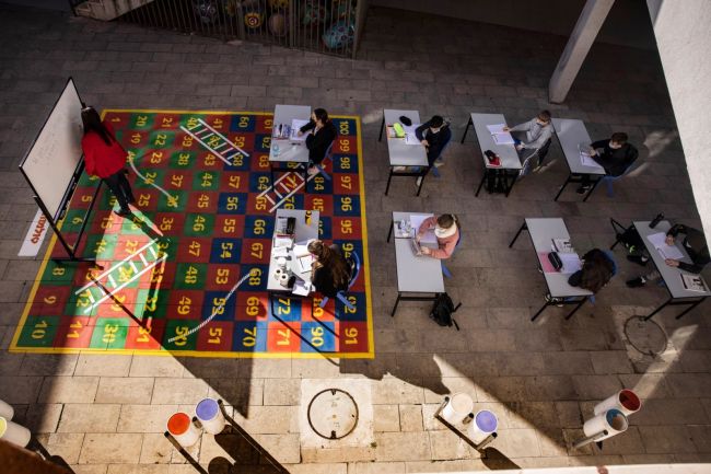 با توجه به هوای خوب اسرائیل، کلاس‌های مدارس در فضای باز برگزار می‌شود