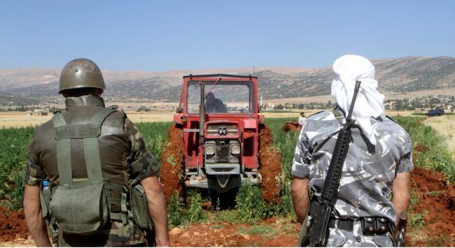 یک سرباز و یک نیروی پلیس مشغول تأمین امنیت یکی از مزارع در حال برداشت حشیش در نزدیکی بعلبکاکنون گفته میشود که دهکده «یمونه» بهترین حشیش را در بعلبک لبنان تولید میکند. اما یک مقام محلی فاش کرده که مدتی است تولید حشیش به دیگر مناطق نیز سرایت کرده است.