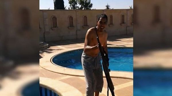 در تصاویر این گوشی هوشمند، شکری سرشار از شور و نشاط جوانی، در حال شیرجه زدن داخل استخری در شمال سوریه دیده می‌شود.