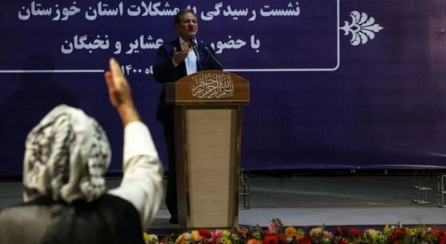 خبرگزاری فارس، تصاویری از فریاد اعتراض یکی از حاضران در دیدار جمعه شب اسحاق جهانگیری در اهواز را منتشر کرده که این تصاویر بازتاب گستردهای در شبکههای اجتماعی داشته است.
