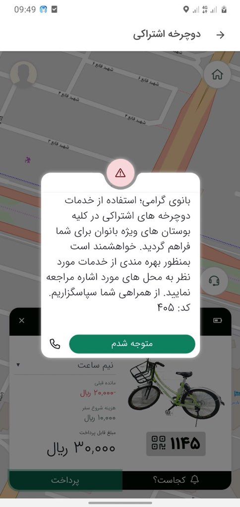 زنان مشهد مجاز به استفاده از دوچرخه های اشتراکی نیستند مگر در بوستان بانوان