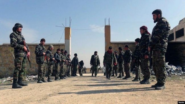 شماری از اعضای لشکر فاطمیون در نزدیکی حلب سوریهرادیو فردا :یک فرمانده گروه «فاطمیون» که سپاه پاسداران اعضای آن را از میان اتباع افغان برای جنگیدن در سوریه بسیج کرده است، میگوید این گروه هیچ برنامهای برای جنگیدن با طالبان ندارد.حجت گنابادینژاد که سایت «انتخاب» از او به عنوان «معاون فرهنگی و رسانهای لشکر فاطمیون» نام برده است، گفته که این گروه پایبند به «اندیشه» رهبران جمهوری اسلامی و «ولایت مطلقه فقیه» است و غرب را متهم کرده که بهدنبال «جنگ روانی و راه انداختن درگیری مذهبی در افغانستان است».