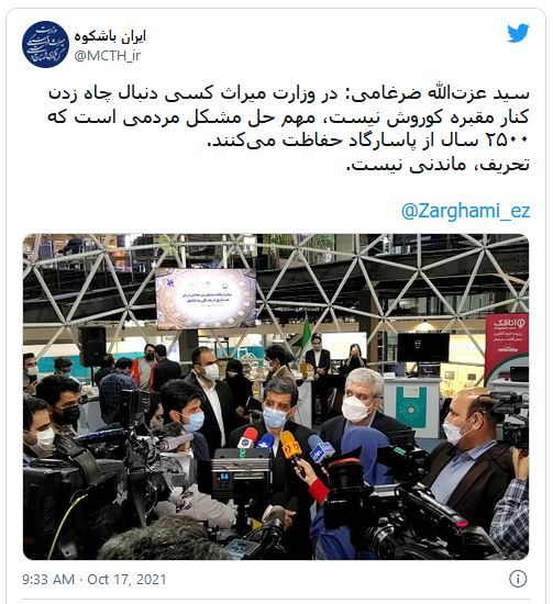عزتالله ضرغامی روز یکشنبه مدعی شد در واکنشهای انتقادی گسترده و شدید درباره اظهارات او در فضای مجازی و رسانهها یک "تحریف عجیب" صورت گرفته و منظور او حفر چاه در حریم آرامگاه کوروش نبوده است.