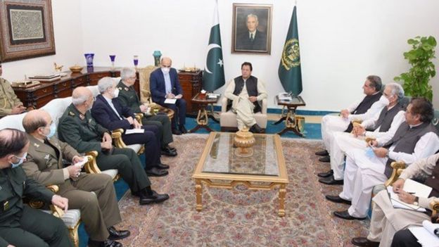 رئیس ستاد کل نیروهای مسلح ایران در پاکستان با عمران خان نخست وزیر این کشور دیدار کرده بودولادیمیر پوتین، رئیس جمهور روسیه به تازگی گفته است که "تجمع آشکار گروههای افراطی و تروریستی" در نزدیکی مرزهای کشورهای آسیای میانه از جمله داعش، جنبش اسلامی ازبکستان، جماعت انصارالله، القاعده و گروههای دیگر وجود دارد.ایران و روسیه در هفتههای اخیر درباره مسائل افغانستان با هم به طور پیوسته تبادل نظر کردهاند.